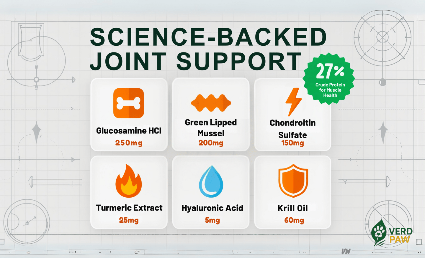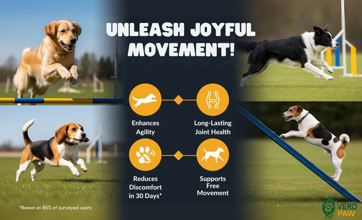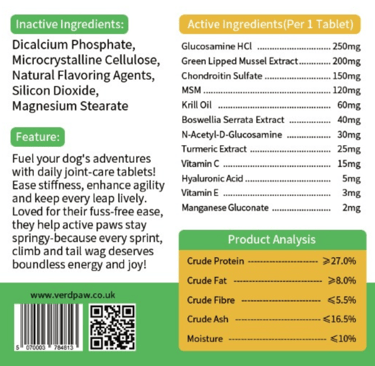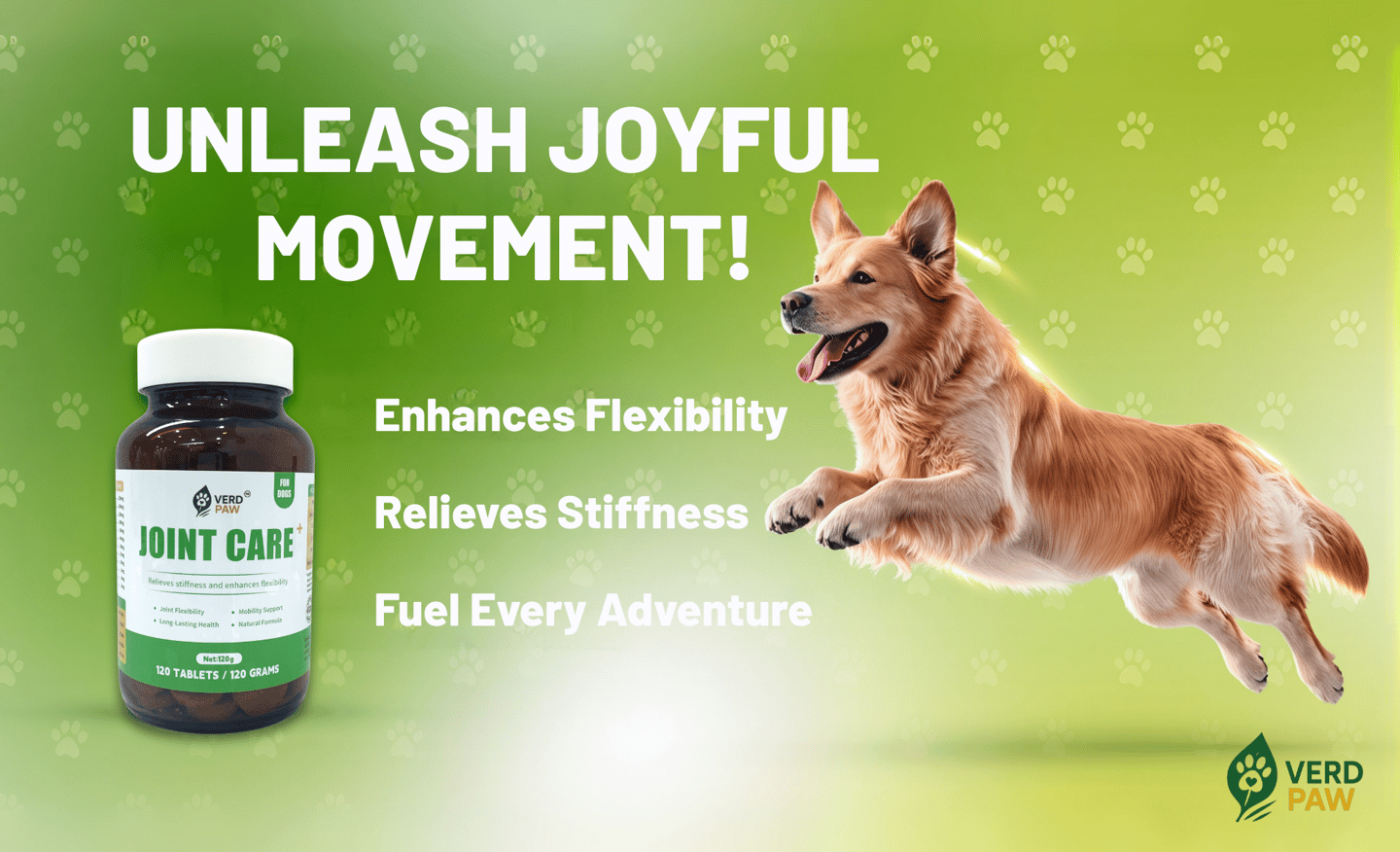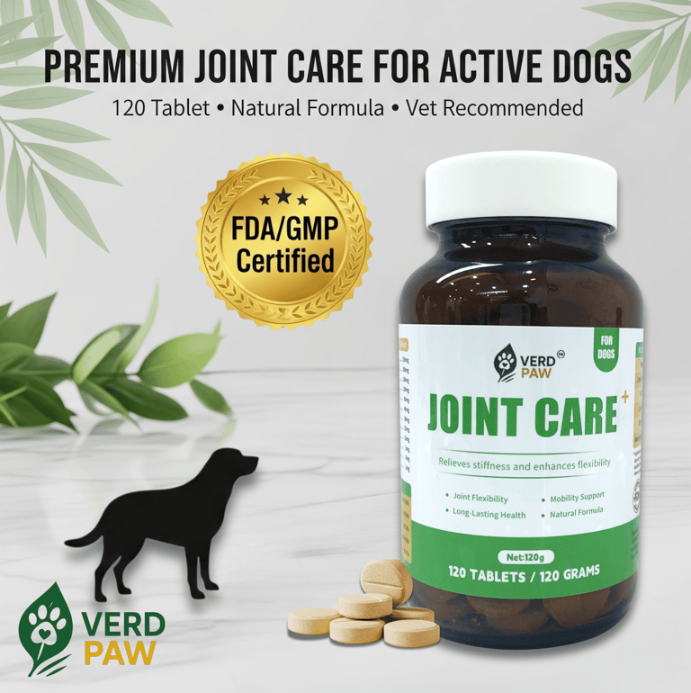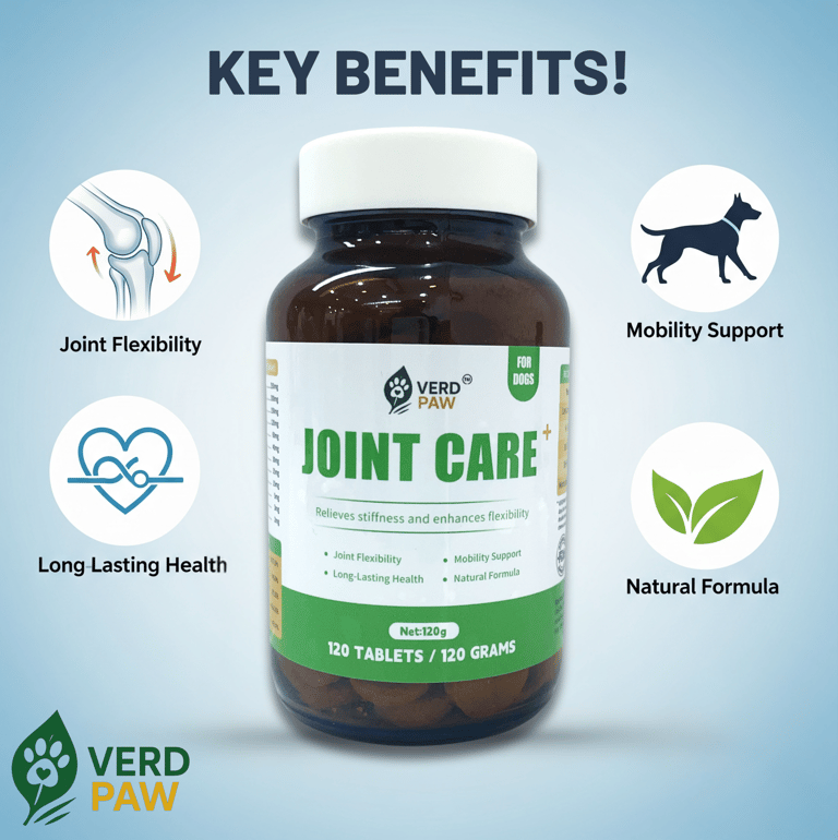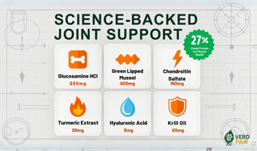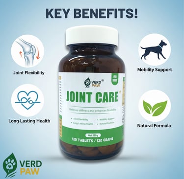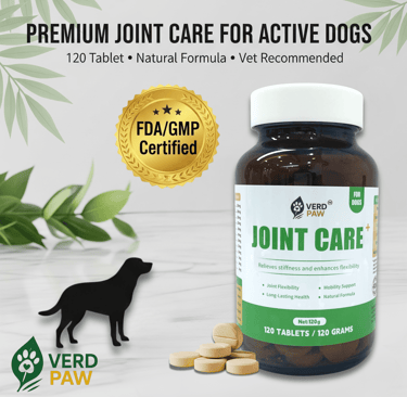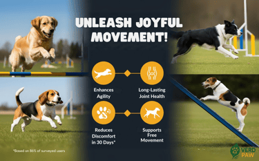 PREMIUM JOINT CARE FOR DOGS: VERD PAW Joint Care+ is formulated to help relieve stiffness and enhance flexibility in dogs of all ages.