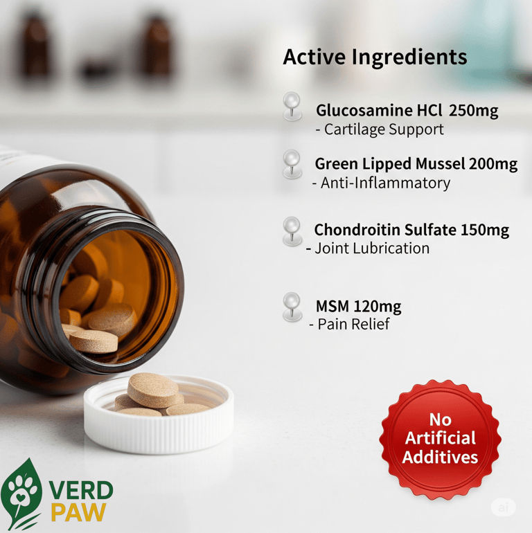 POWERFUL ACTIVE INGREDIENTS: Each tablet is packed with Glucosamine HCl (250mg), Green Lipped Mussel Extract (200mg), Chondroitin Sulfate (150mg), MSM (120mg), along with Krill Oil, Turmeric, and other vital vitamins and minerals.